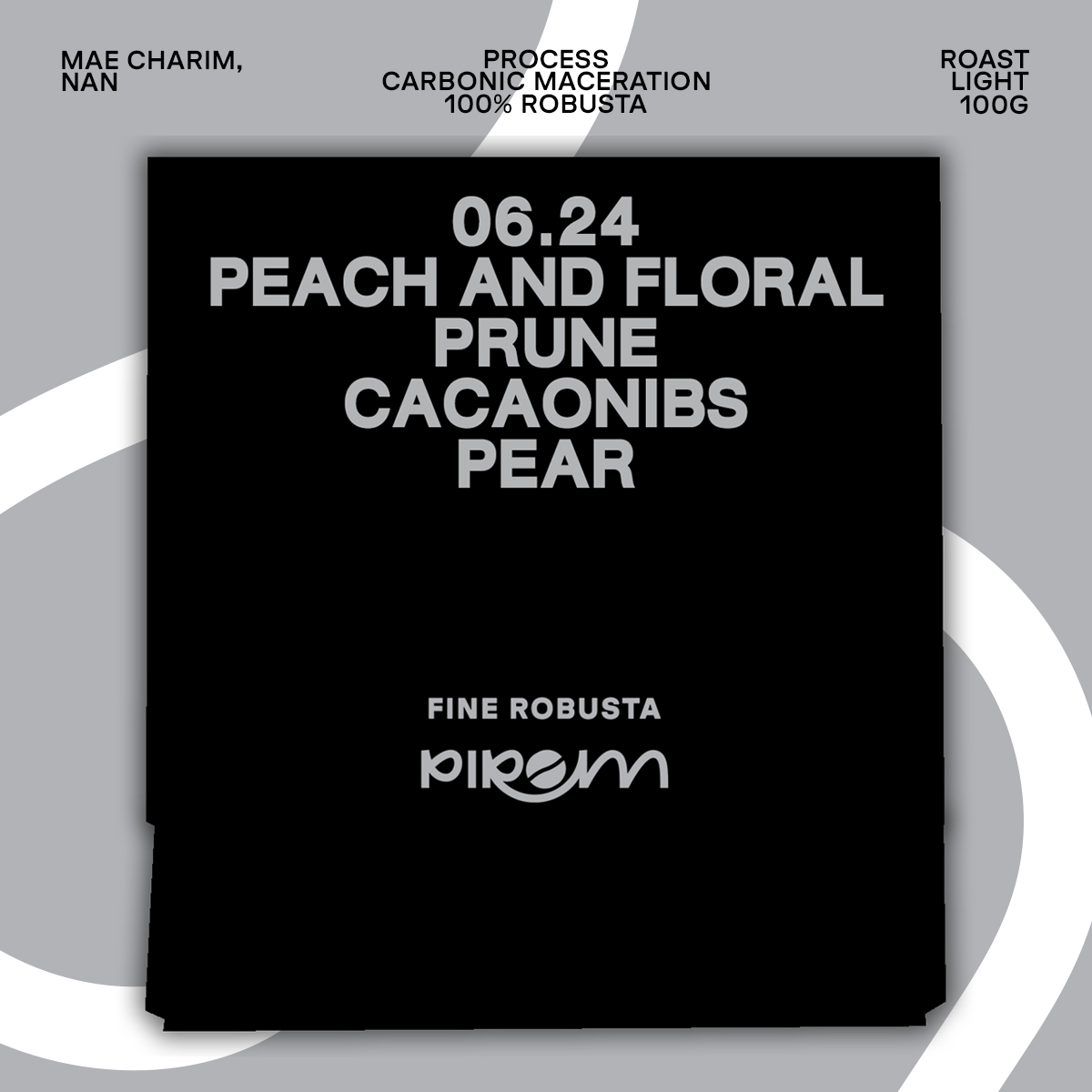 Jun82024FINE ROBUSTAPIROM COFFEEROASTED BEAN FINE ROBUSTA 06.24 220 THB / 100G TASTE NOTE : PEACH / FLORAL / PRUNE / CACAONIBS / PEAR ORIGIN : MAE CHARIM, NAN VARIETY : ROBUSTA 100% PROCESS : CARBONIC MACERATION ROASTED : LIGHT Categories: FINE ROBUSTA, PIROM COFFEE, ROASTED BEANJune 8, 2024Post navigationPreviousPrevious post:BAKERYNextNext post:ESPRESSOICED ESPRESSO No.1June 8, 2024ICED ROBUSTAJune 8, 2024ICED ESPRESSO No.2June 8, 2024HOUSE BLEND NO.2June 8, 2024HOUSE BLEND NO.1June 8, 2024ESPRESSOJune 8, 2024