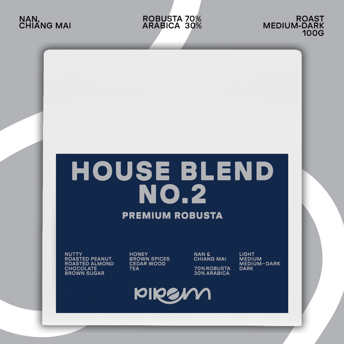 Jun82024PIROM COFFEEPREMIUM ROBUSTAROASTED BEAN HOUSE BLEND NO.2 100 THB / 100G TASTE NOTE : Nutty / Roasted Peanut / Roasted Almond / Chocolate / Brown Sugar / Honey / Tea Brown Spices / Cedar Wood ORIGIN : NAN, CHIANG MAI VARIETY : ROBUSTA 70% / ARABICA 30% PROCESS : – ROASTED : MEDIUM-DARK Categories: PIROM COFFEE, PREMIUM ROBUSTA, ROASTED BEANJune 8, 2024Post navigationPreviousPrevious post:HOUSE BLEND NO.1NextNext post:ICED ESPRESSO No.2ICED ESPRESSO No.1June 8, 2024ICED ROBUSTAJune 8, 2024ICED ESPRESSO No.2June 8, 2024HOUSE BLEND NO.1June 8, 2024ESPRESSOJune 8, 2024FINE ROBUSTA 06.24June 8, 2024